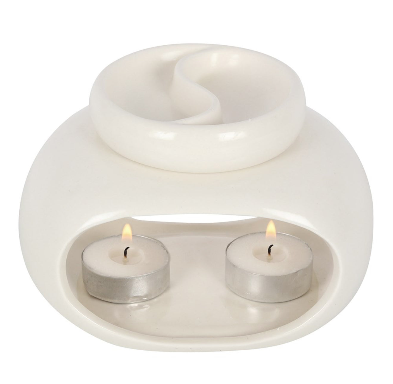This double oil burner and wax warmer makes it easy to customise scents when fragrancing the home with oils or wax melts. Simply place two varying scents on either side of the divided bowl to enjoy a bespoke fragrance made just for you! The understated, off white colour of this burner makes it perfect for a wide range of home decor styles.